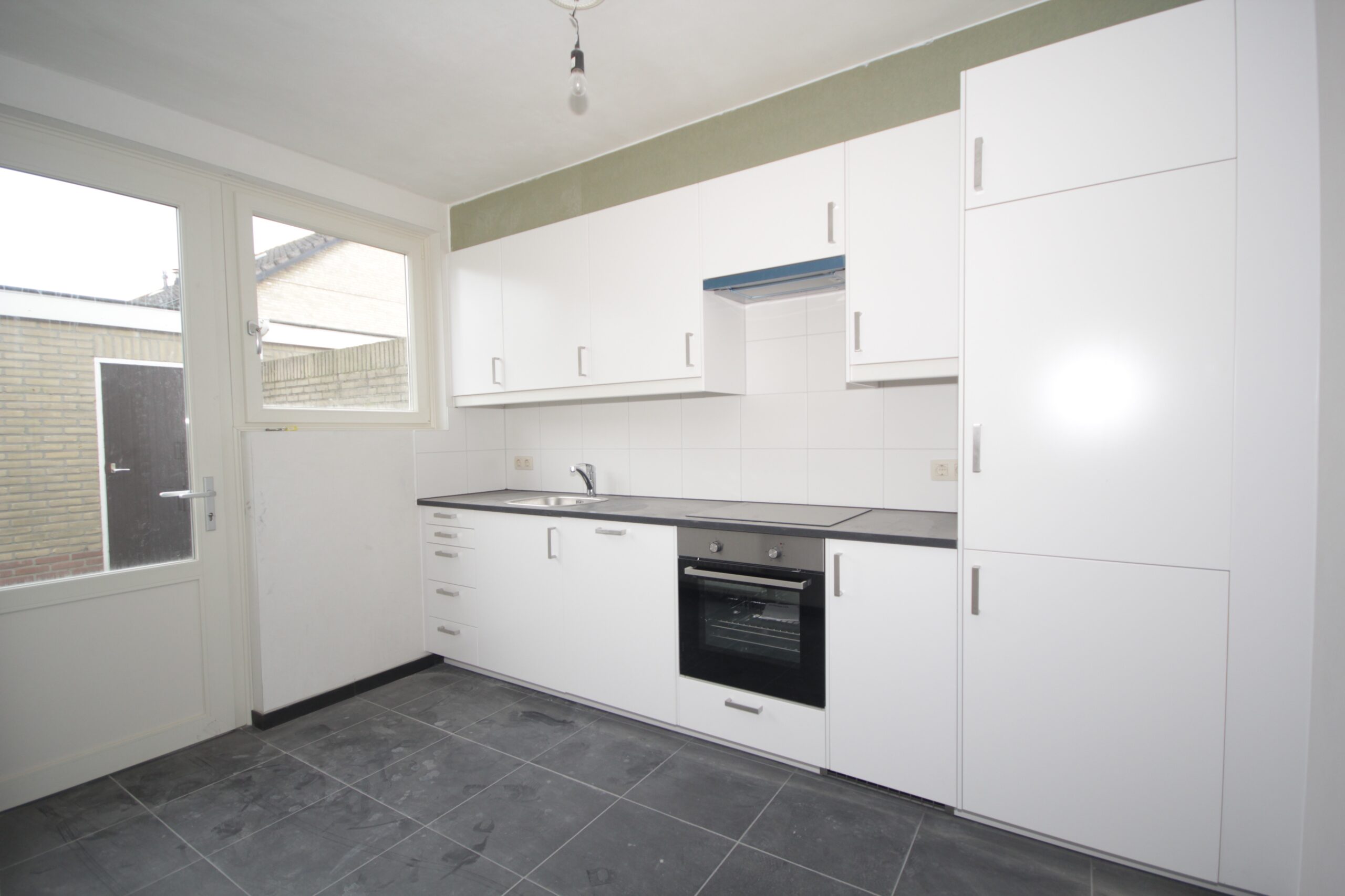 Vanuit de hal betreedt u de keuken, voorzien van keukeninrichting met diverse onder en bovenkastjes en alle apparatuur (kookplaat gas, oven, koelkast, vriezer en vaatwasser). Vanuit de keuken is de tuin en berging bereikbaar. Uiteraard is de gehele woning voorzien van centrale verwarming. Naast de entree en keuken bevindt zich over de volle lengte van de woning de woonkamer (28,5m2).